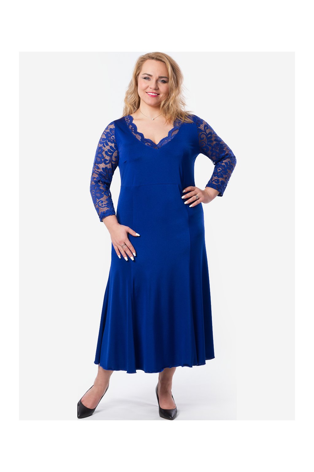 Krásné společenské šaty. Rukávy jsou z krásné krajky, která je použita i na zdobení ve výstřihu. Vždy šijeme na míru, proto nám své míry a požadavky napište do poznámky.
