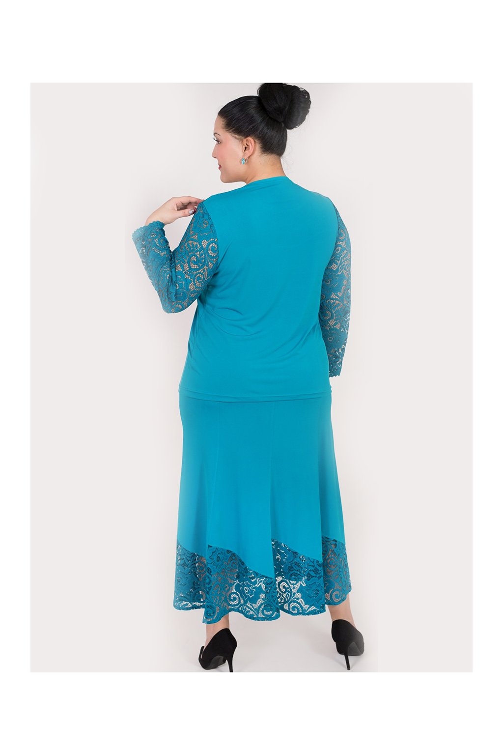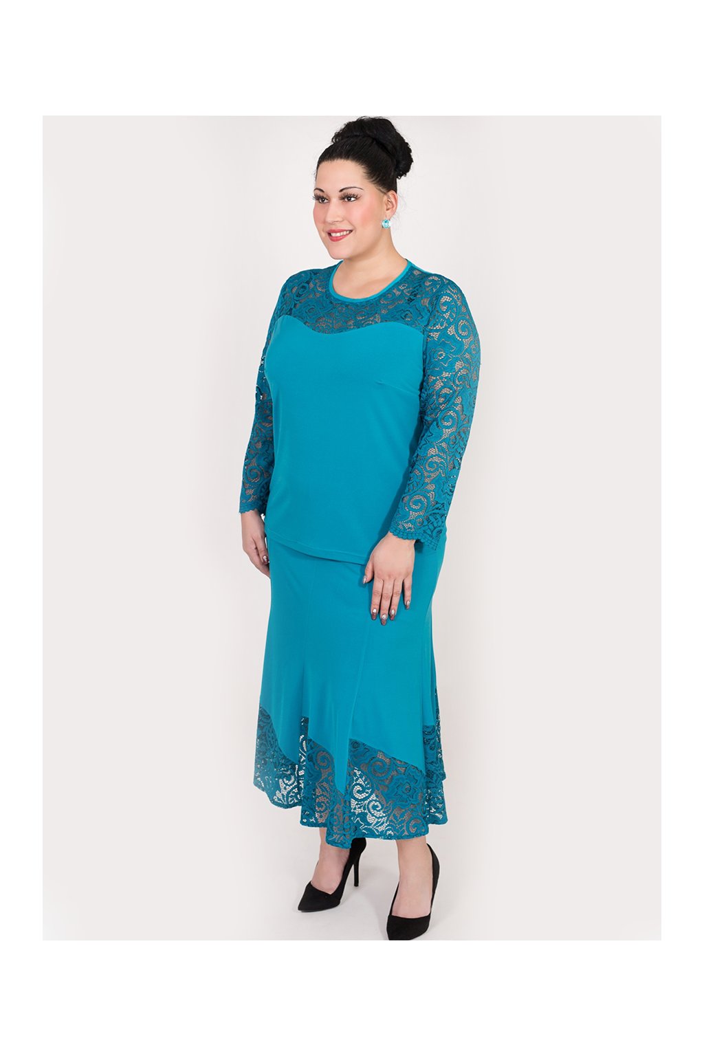 Elegantní, společenská sukně, kombinace pružného materiálu s pružnou krajkou. Se halenkou PETA tvoří půvabný kostým pro každou příležitost. Střih na vaši postavu a délku ZDARMA upravíme, napište nám vaše míry.