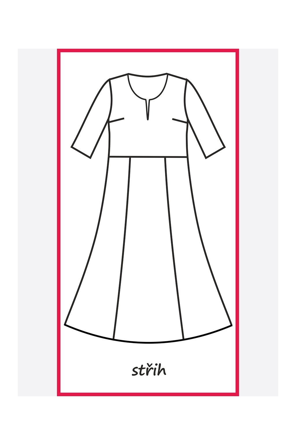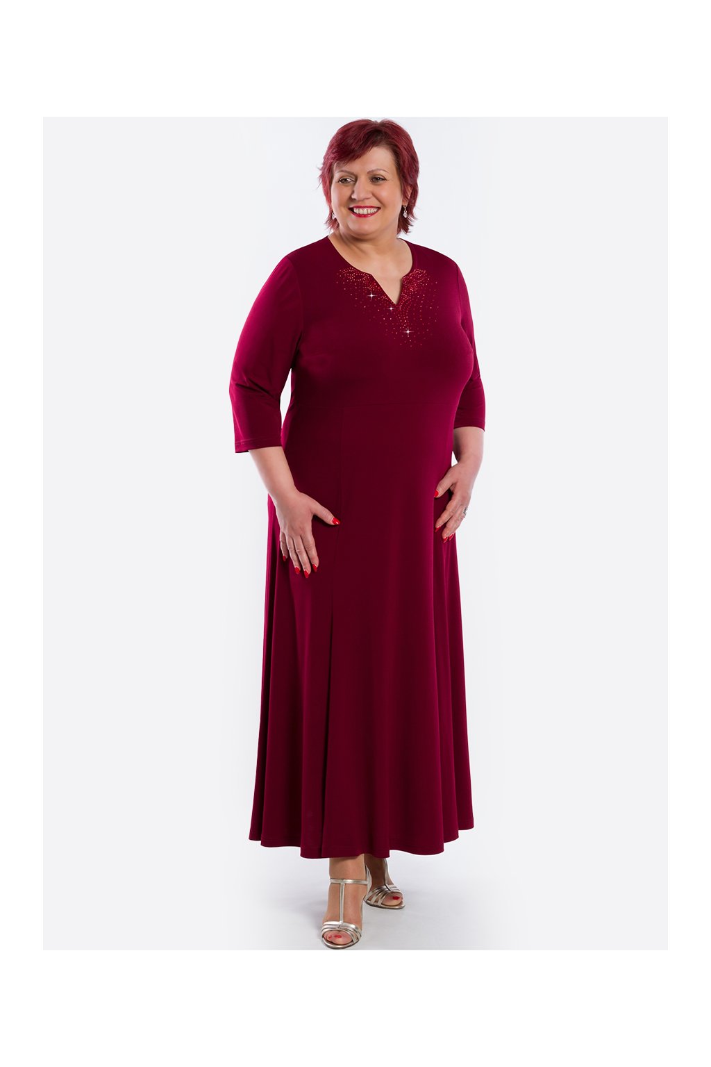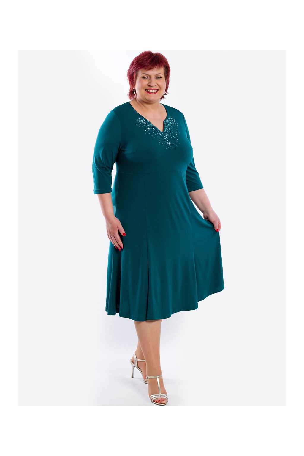 Pružné, společenské šaty se zajímavým výstřihem zdobeným kamínky v barevném tónu šatů. Zcela nemačkavé, krátký nebo 3/4 rukáv. Střih na vaši postavu i délku ZDARMA upravíme, napište nám vaše míry.