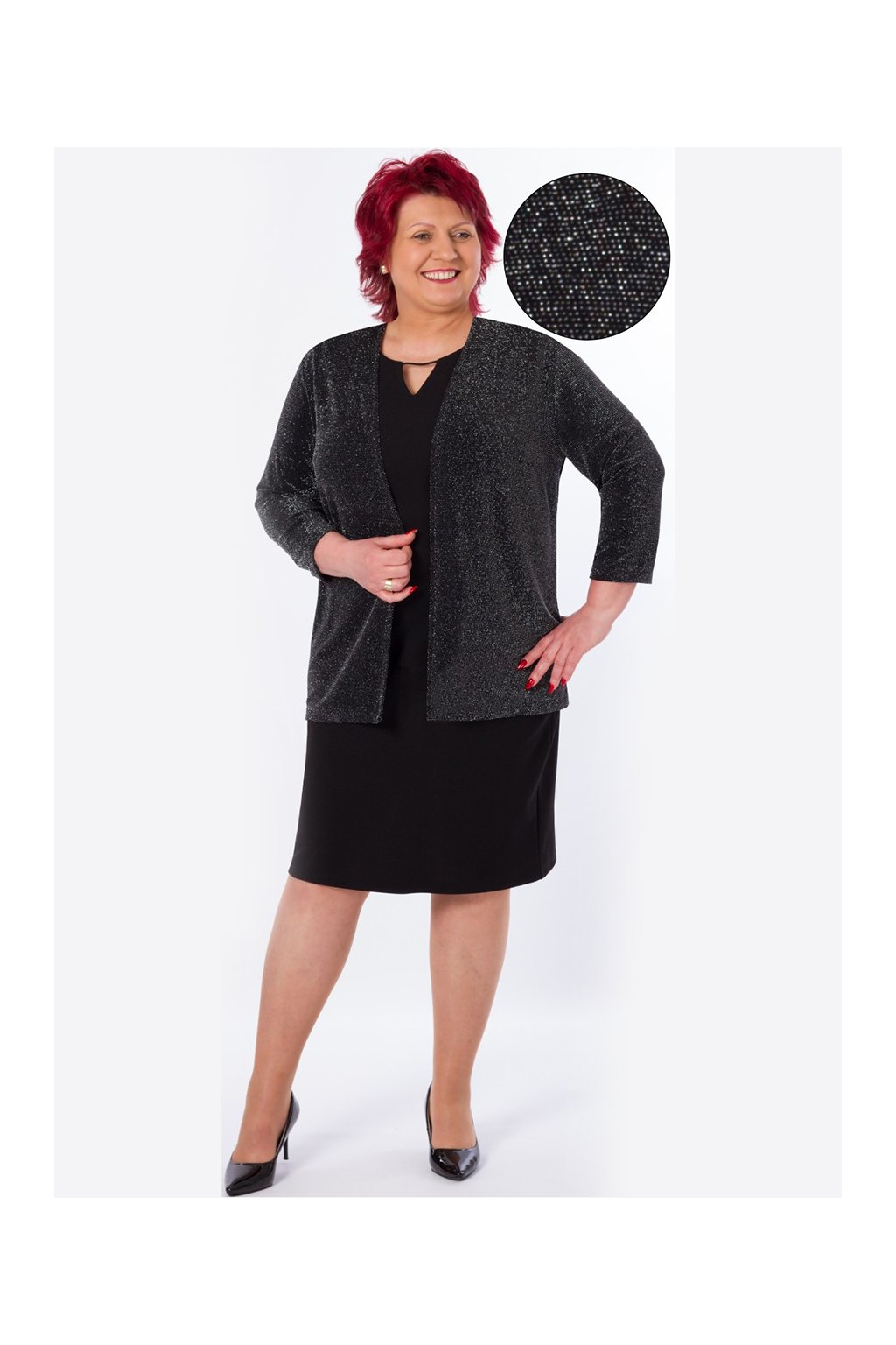 Společenský kabátek s jemnou lurexovou nitkou, jemný, splývavý, lehký. Vhodný k šatům, k sukni i kalhotám. 3/4 nebo dlouhý rukáv, zvolte si délku. Střih na vaši postavu a délku ZDARMA upravíme, napište nám vaše míry.