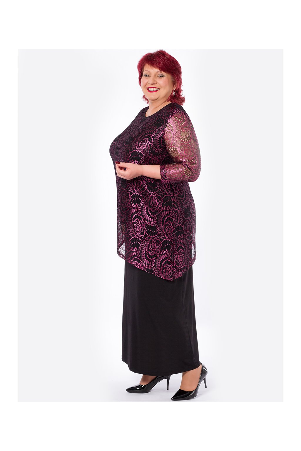 Dvouvrstvé, pružné, společenské šaty, které neobepínají, vrstva krajky tajemně zahaluje nedostatky postavy, pro plnoštíhlé. Spodní část splývavá, rozšířená do "áčka", vrchní část a rukávy z exkluzivní krajky s tlumeným leskem. Střih na vaši postavu i délku ZDARMA upravíme, napište nám vaše míry.