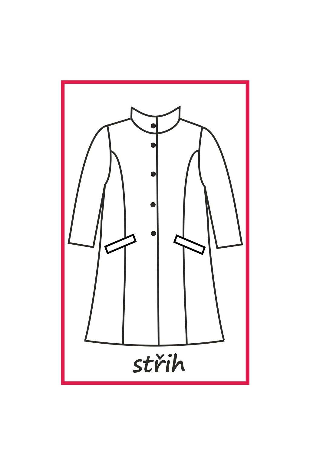 Hit sezóny! Lehký kabát z pružného flauše, bez podšívky, příjemný, hřejivý, vhodný i do mírné zimy. Střih mírně do áčka, zapínání na knoflíky, s kapsami, límec do stojáku. Střih i délku na vaši postavu ZDARMA upravíme. Napište nám vaše míry, aby kabát perfektně seděl.