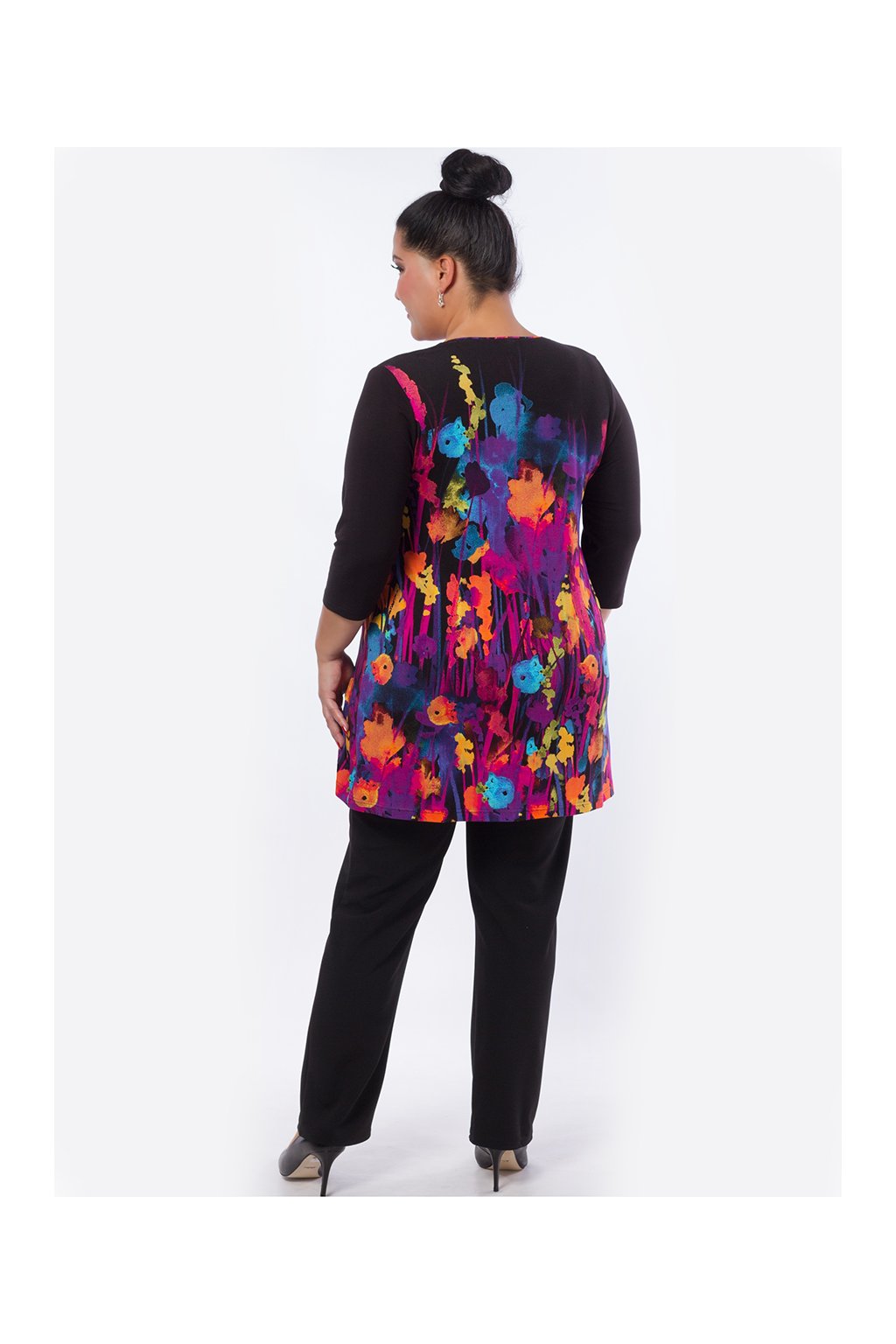Společenská i vycházková tunika od boků mírně rozšířená do "A", zajímavý výstřih do "srdíčka". Efektní vzor, příjemný, pružný, hebký a nemačkavý materiál. Střih na vaši postavu a délku ZDARMA upravíme, napište nám vaše míry.