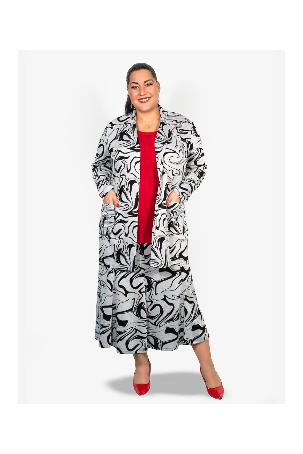 Elegantní dílová sukně do áčka z teplejšího, příjemného materiálu se zajímavým vzorem, který lichotí postavě a krásně splývá. Nabízíme variantu s podšívkou i bez podšívky, podle toho, co Vám bude pohodlnější. Sukni Vám ušijeme na míru, délku i celkové proporce upravíme tak, aby perfektně seděla.