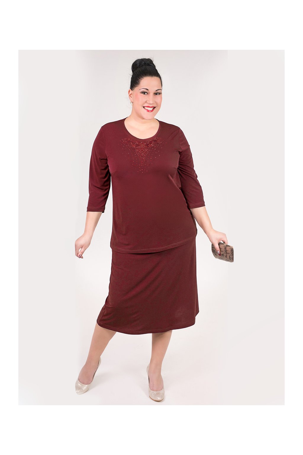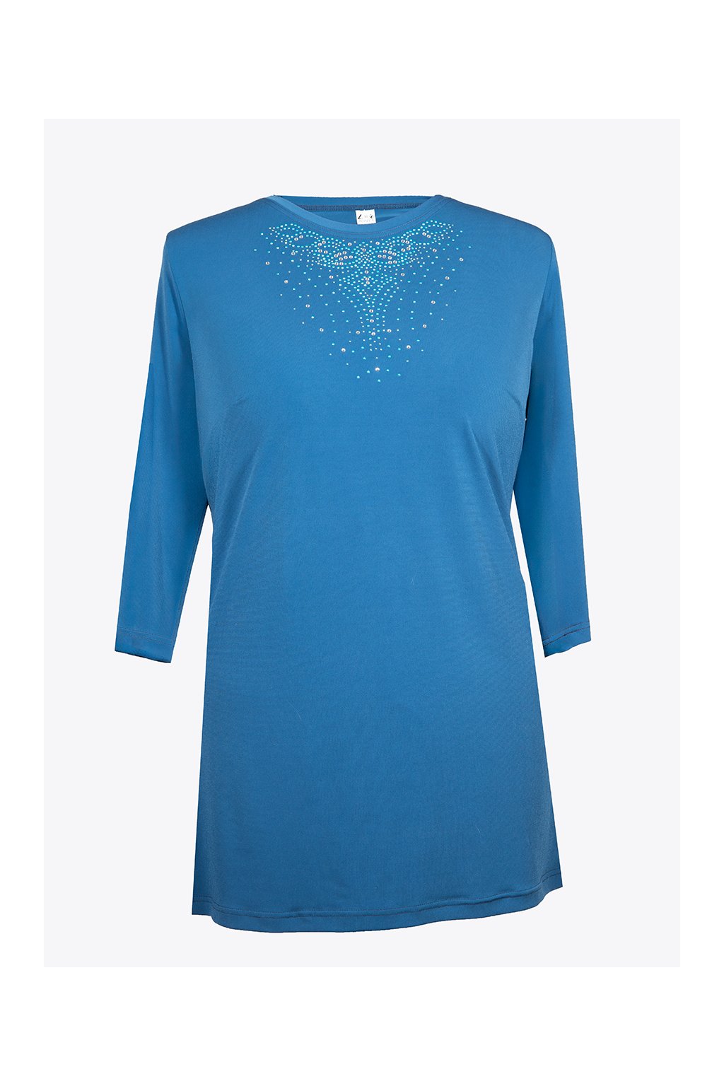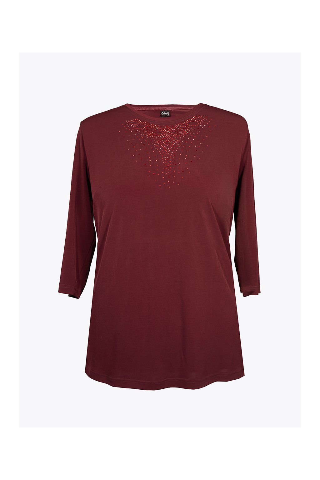 Společenská, pružná, příjemná halenka. Přední díl zdobí půvabná aplikace kamínků v barvě halenky. (černá halenka má stříbrné kamínky) Vhodná k sukni STELA, LOTA, KLASIK, ke kalhotám KLASIK a s kabátkem TOMÁŠ ze stejného materiálu.
