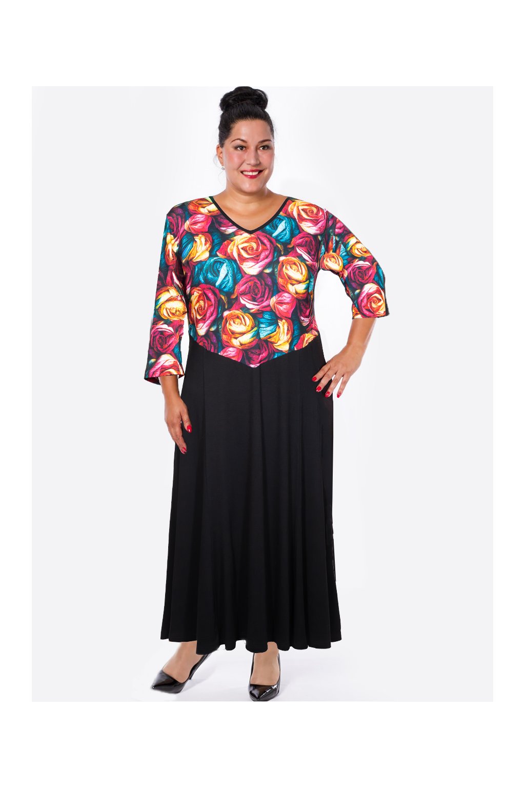 Mají originální a výrazný vzor růží, který působí velmi žensky, elegantně a dodává šatům jedinečný charakter. Díky kombinaci materiálů vzniká model, který je originální, vkusný a nepřehlédnutelný.