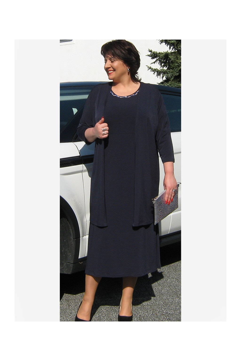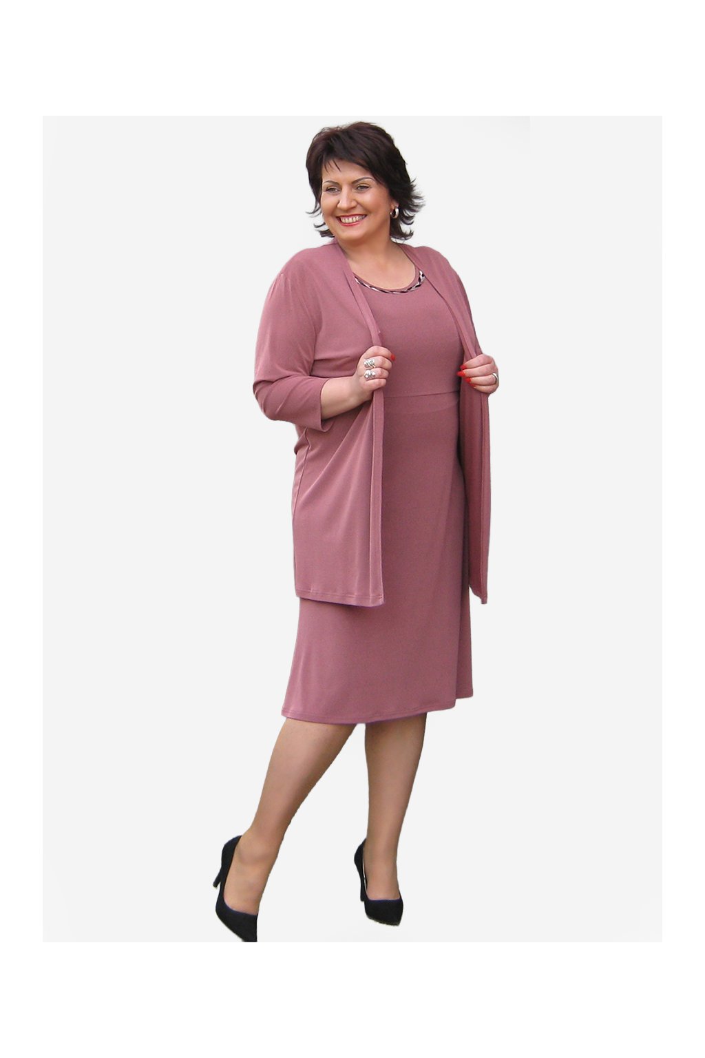 Elegantní šaty, s půvabným detailem ve výstřihu. Střih mírně do "áčka", prostřižené pod prsy, sedí i plnější postavě. Kombinujte s kabátkem TOMÁŠ ze stejného materiálu. Střih na vaši postavu upravíme. Napište nám vaše míry.